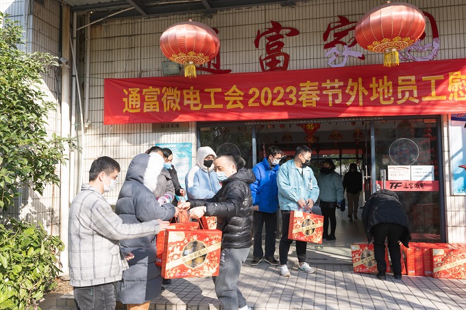 癸卯兔年新春佳节来临之际,1月17日下午,总务部副部长徐珉武、工会办公室主任茅向荣一行来到天博体育在线登录官网入口家园开展新春慰问送温暖活动,给居住在公司集体宿舍的南通大市以外的留岗员工送上坚果礼盒等慰问品,祝福员工们新春快乐,身体健康,万事如意!